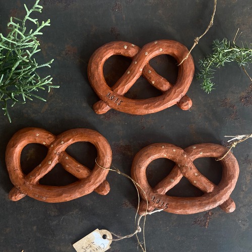 成形後、彫刻刀で彫り込み、硬めに焼き上げた素焼きの陶にアクリル絵の具で色付けをし、ガラスコーティングで仕上げています。